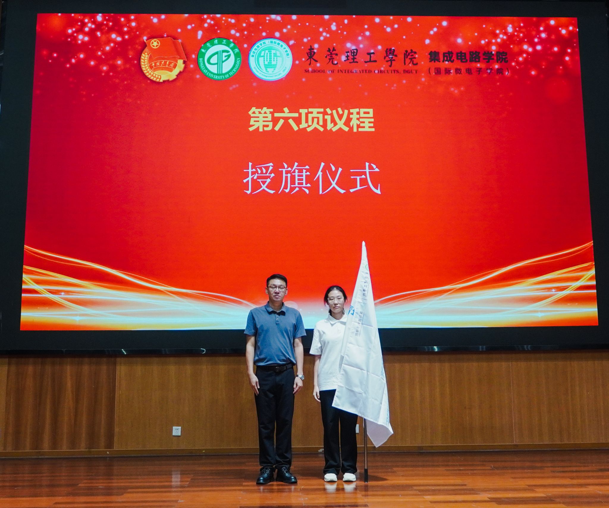 )党委副书记翁炎泉老师为我院第三期青马班学员代表授旗