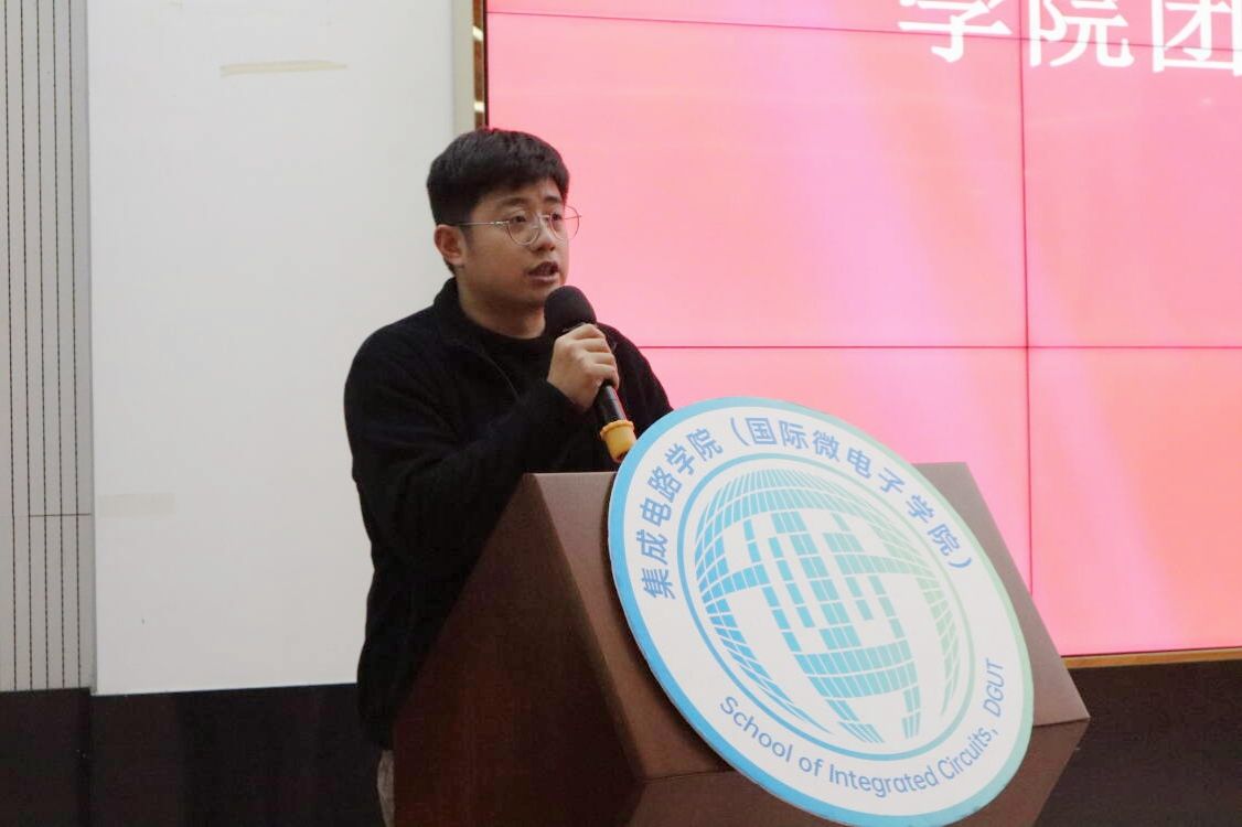 团委学生副书记谭尧文在发言中首先分享了他在团学工作中的成长与收获。他同时强调,团学组织是连接学生与学院的重要桥梁,始终坚持以服务同学为根本宗旨。展望未来,他期待全体团学成员能够成为彼此成长道路上的挚友与并肩作战的战友,继续保持积极投入的工作态度,团结一致,共同为团学事业的长远发展贡献青春力量。